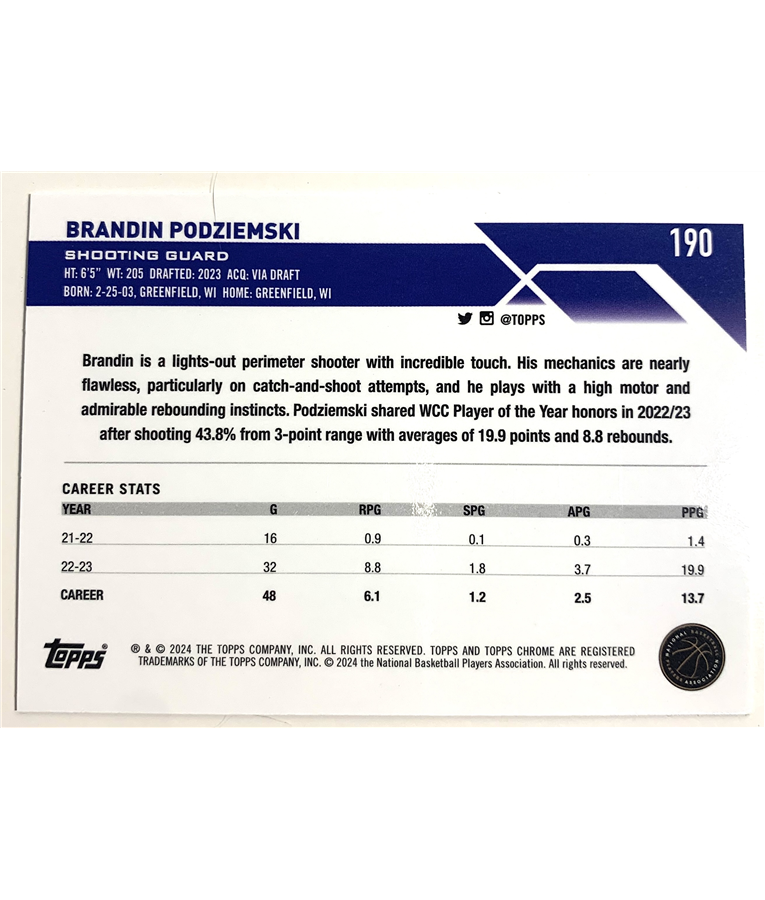 Chrome #190 Brandin Podziemski